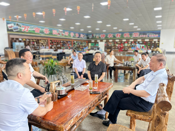 生產(chǎn)車間,詳細了解了企業(yè)生產(chǎn)經(jīng)營、產(chǎn)品開發(fā)、品牌打造、市場銷售以及茶園種植、管理、采摘加工等情況,并召開座談會。