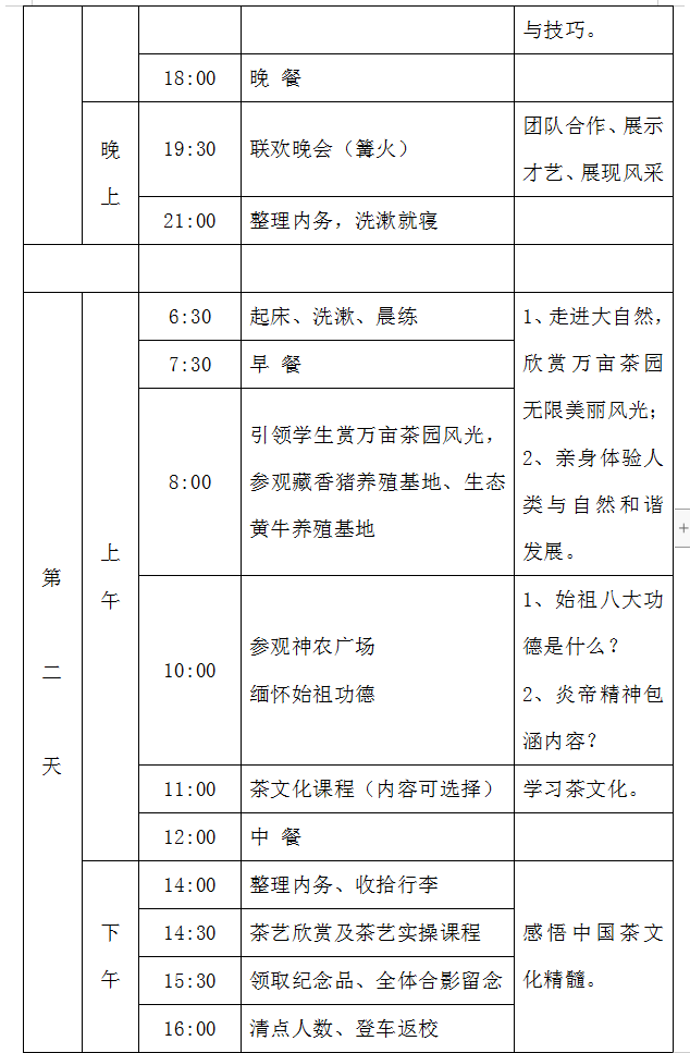 2、學習茶文化、農(nóng)耕文化、國學禮儀,全面提升學生個人文化素養(yǎng),培養(yǎng)高雅的氣質(zhì)和高尚的道德情操;